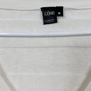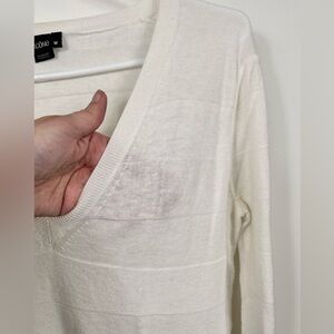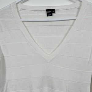 Icône by Simons cotton-linen blend summer vneck sweater, lightweight sheer, subtle tone-on-tone horizontal stripes. Size Medium. Classic Preppy Coastal Clean girl aesthetic. Excellent preowned condition