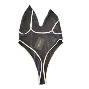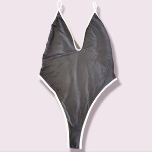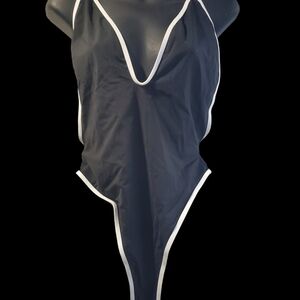 NWT - great quality black with white trim. One piece thong swimsuit in Women's XL with adjustable straps. Fits true to size.