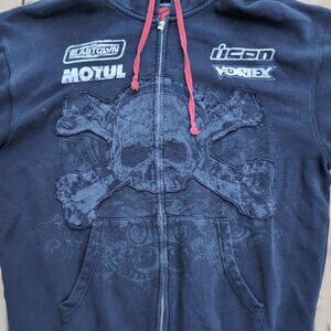 Icon Vortex Full Zip Hoodie Men's L Black Motorcycle Biker Skull and Crossbones.