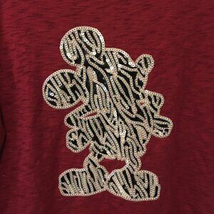 Iconic Disney Mickey Mouse Zebra Print Sequin Crimson Pullover