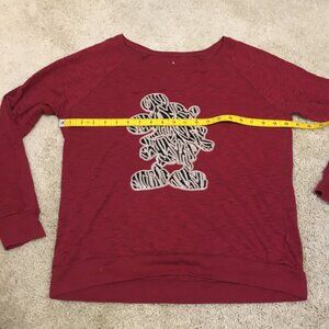 Very good preowned condition, red pullover sweater featuring Mickey Mouse zebra print sequin pattern. This is official Disney merchandise in very good condition and made with breathable cotton blend fabric.