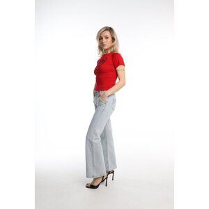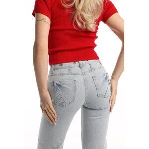 A modern denim essential featuring a statement eyelet waistband and a flattering high-waisted fit. Crafted from premium denim for all-day comfort and effortless style.