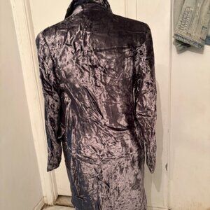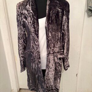 Identify crushed velvet long jacket blazer. Never worn!. Beautiful material, no rips or damages. Size 8. Made in Canada. Make sure to check out my listing of the matching skirt!!!