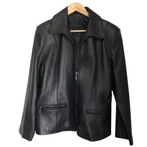 Identify black leather jacket