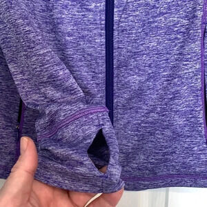 In immaculate condition. Zipper, front pockets, thumb holes. Color is purple.