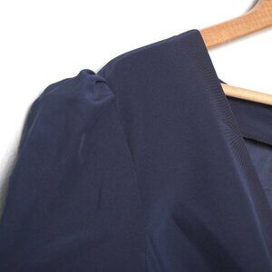 Ieena for Mac Duggal Plunge Neck Puff Sleeve Cut Out Gown Long Dress Navy Beaded