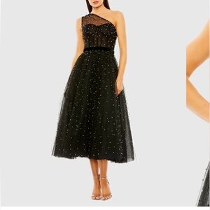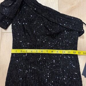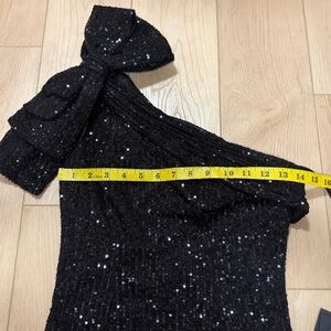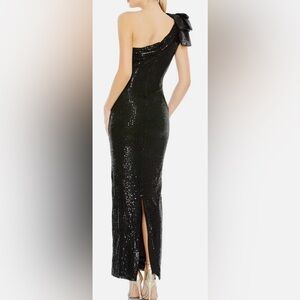 Ieena for Mac Duggal Sequined Bow One Shoulder Column Gown, Black, sz 0