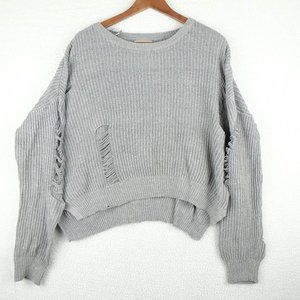 If It Were Me Sweater Womens Medium Gray Distressed Cropped Oversized Outdoor