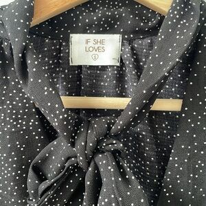 If she loves longsleeve short white black polka dot dress tie scarf size S