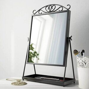 Ikea KARMSUND black iron modern table mirror jewelry holder black 10 5/8 x 16 7"