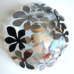 Vintage 2006 Ikea Stockholm silver metal fruit bowl designed by Monika Mulder.