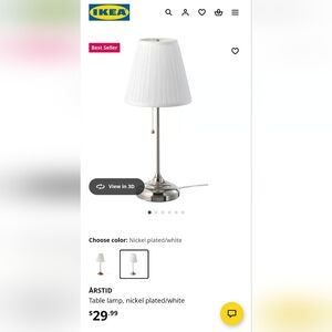 Ikea ÅRSTID table lamp, nickel-plated/white Item number 202.806.36 No lampshade unfortunately