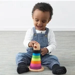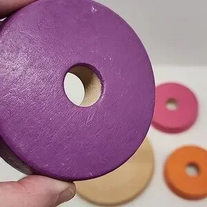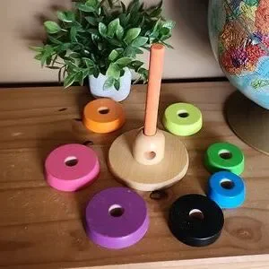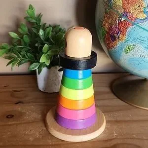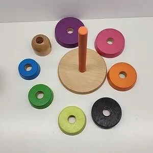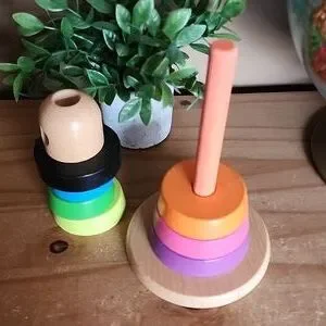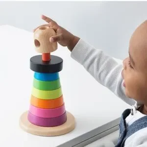 Colorful IKEA wooden stacking tower in very good preloved condition with minor signs of wear.