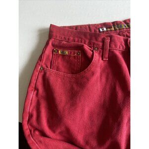 Ikeda 34X32 90s High Waisted Tapered Red Jeans Vintage Y2K Boyfriend Mom Jeans