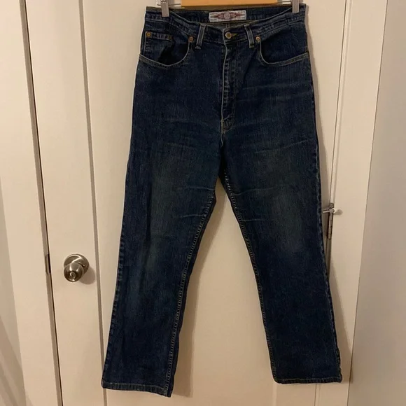Ikeda vintage jeans. Nice high rise. Relaxed straight. Medium blue wash. Beautiful vintage condition. Cult favourite.