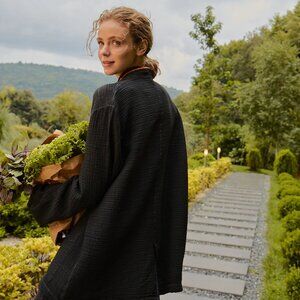 Made with a luxe fabric composed of doubled Turkish muslin cotton. The crinkle muslin texture is incredibly soft on the skin, and feels lightweight, yet substantial when worn. Designed in an oversized style, the Crinkle Jacket has long, wide sleeves & pockets, making it a go-to layer piece.