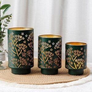 Illuminating Candle Holders 3pc Set Green Modern Farmhouse Candle Display Decor
