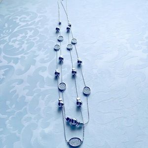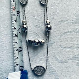 Illusion Double layered Silver 38” sparkling silver druzy Necklace