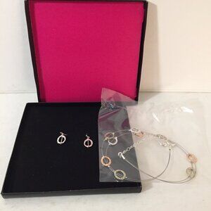 This is a set with a necklace, bracelet and earrings. The earrings are with the necklace in one box and the bracelet is on its own in a separate box. They are new never worn. The packaging is sealed so I can't provide measurements but the necklace is an average length. They set is from 2013 by Avon.