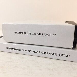Illusion Hammered Necklace Earrings & Bracelet Set Tricolored. NEW Retired Avon