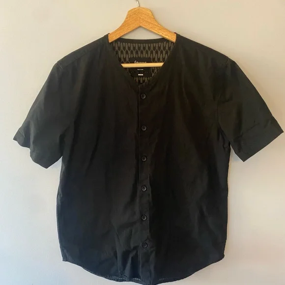 Baseball shirt style. Pockets in front