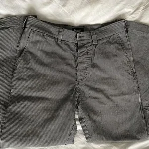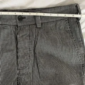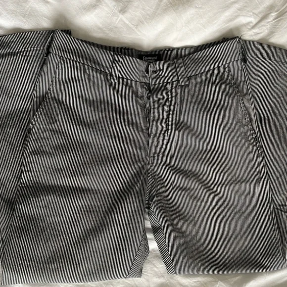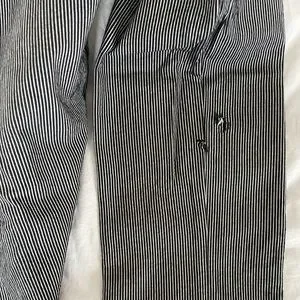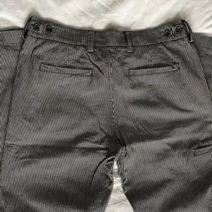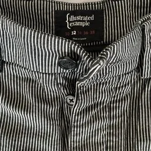 Made in Canada of Japanese hickory stripe fabric. Small tear from biking near the bottom of the leg, shown, really great shape otherwise. Size 32.