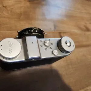Vintage Iloca camera. German made. self wind the film. 1950s camera. custom leather case. As is condition.