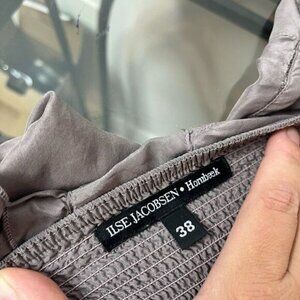 Ilse Jacobsen Hornbaek Women's Ruffle V-Neck Sleeveless Mini Dress Gray Size 38. Should fit as approx US Size 8. 100% silk. Non stretch.