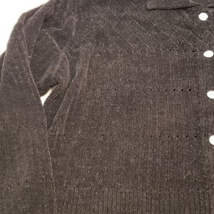 Image by Sears Black Thick Ribbed Knit Cardigan