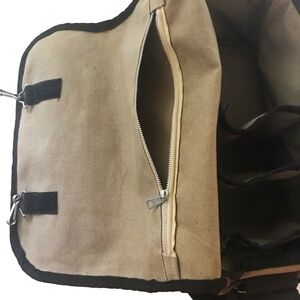 Zipper pocket on flap & 3 outside pockets on back & sides
