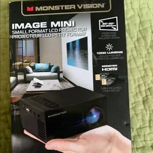 Experience stunning visuals with the Image Mini LCD Projector. This compact black projector offers a powerful 1000 lumens light source, perfect for home entertainment. Enjoy a screen size of 60-80 inches with ease. HDMI cable included for seamless connectivity.
