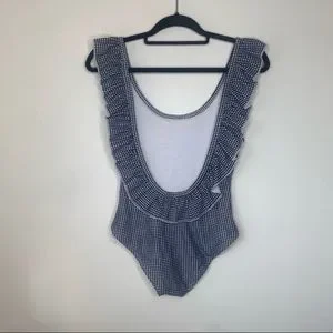 Flattering compression fabric and fit. Size small. Would fit XS as well. Black and white check. Perfect condition.