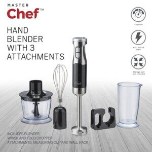 Master Chef corded hand blender with whisk, stainless steel. Comes with 3 attachments.