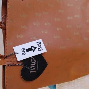 Imoshin Pineapple print tote bag with clutch , new with tags. Vegan leather.