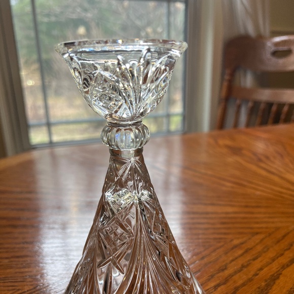 This gorgeous piece can be used for flowers, votive or taper candles, candies or just on its own as a focal center piece. The brilliance and shine that emanates from this piece of fine crystal will take your breath away. Perfect in any room and with any decor.