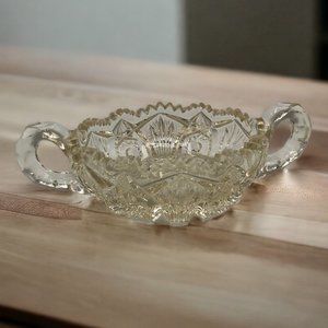 Imperial Glass Deep Cut Nappy Candy Dish Sawtooth. . It is so pretty and quite sharp in places. One small flaw chipping in top of one handle. See picture for detail. not that noticeable.