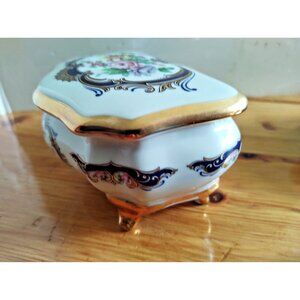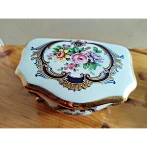 Imperial Limoges Floral Trinket Box Gold Gilded - Made in France 5 1/2" x 3 1/2" x 2 1/2" tall