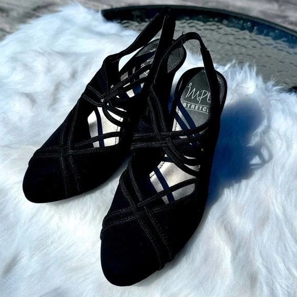 Black heels from Impo, from their stretch line Great for wider feet Low heel Size 6.5 Like new