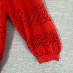 Impress Bolero Sweater Sz Large Red Crochet Cutouts Lightweight Knit Half Sleeve