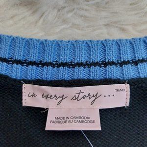 Check out this In Every Story Women's Black and Blue Stripped V-Neck Knitted Sweater in excellent new with tag condition.