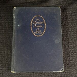 Classic 'In Flanders Fields' book with a navy cover and gold lettering. First edition ( fourth impression ) nice condition with foxing and wear expected for 1919 printing . Great for a rememberance day keepsake .