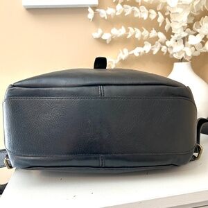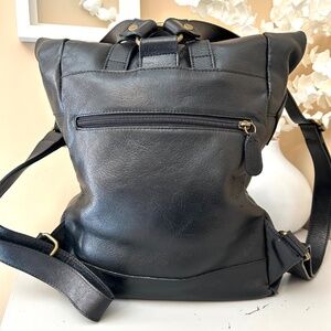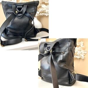 In Pell is a division of Valentina Made in Italy Leather Accessories aimed at a male audience that makes accessories a lifestyle in the name of quality. Robust leather and a canvas interior stands the rigours of life. A roomy open interior with one zip and two open pockets inside, plus outside zip pockets on back and one side. Brass hardware. Large rectangular design, approx measurements are Front 10” wide, Sides 4.5” wide, Bottom 5” Deep, 17” Tall when opened, 13” Tall when flap is folded. Two snaps at top and fold over design with buckle clip keeps everything secure.Carry handle and adjustable shoulder straps. Some marks on interior as shown in photos, pocket linings are perfect. Leather in excellent condition with slight wear at corner top as shown in photos. Overall in Excellent Condition ! 🤩