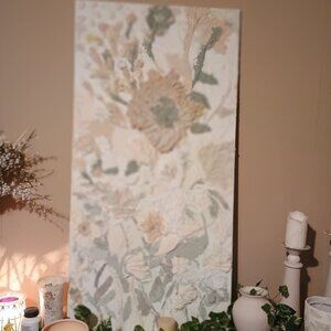 Artwork is signed. No frame. I have had many compliments and custom orders from this piece. Still unique & original - always. This piece is quite heavy. Material includes canvas, plaster, joint compound, real flowers, acrylic and glue.