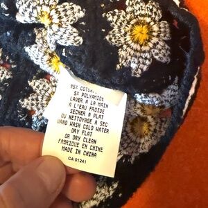 In april Paris 1986 (sold by Simons) black, white and yellow daisies crochet vest new with tags. Openwork diamond crochet knit, buttons down the front, cropped boxy fit 95% cotton 5% polyamide. So fun and cute, strong boho festival vibe. Colour is accurate in the stock photos, mine are taken in artificial light. Marked size One size All measurements are approximate and taken with the garment laying flat: Pit to pit 17’’ Total length 20’’. This item comes from a smoke free, pets friendly home. Recycled bags/box used when possible. Please, let me know if you'd like any additional info. Thanks for watching!