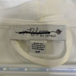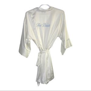 In bloom the bride white silk robe S small NWOT. Small marker stain on one sleeve. Enhanced to show flaw