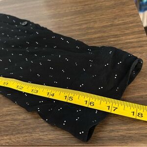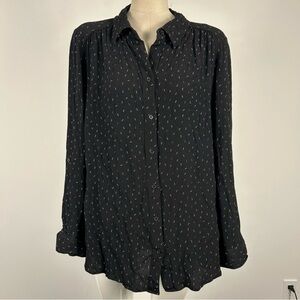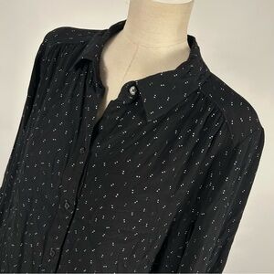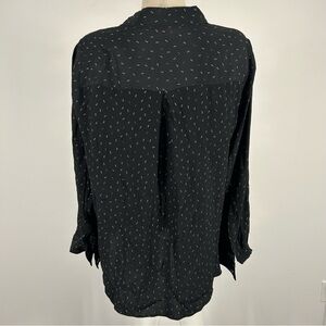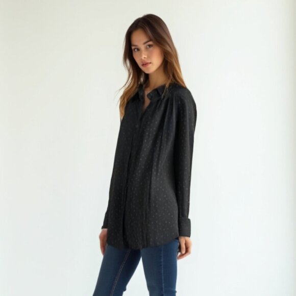 Elegant black button-up top with subtle patterns, perfect for any occasion.