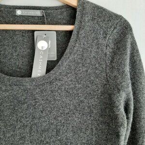 InCASHMERE 100% Cashmere Scoop Neck Sweater Grey Sz M