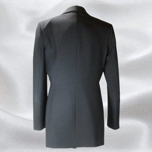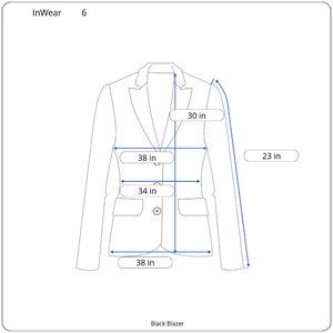 This InWear black blazer in size 6 has a V neckline, slim lapel and an one button closure. This stylish blazer is a classic in anyone's wardrobe. Hardly ever worn and in excellent condition with no flaws. Measurements in photos - note measurements taken flat and unstretched. Waist, Hip and armpit to armpit (chest) is then doubled.