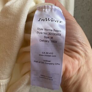 This cardigan is in new condition. I bought to wear to a summer wedding at a yacht club and wore it for about 20min that evening. It is ridiculously soft and has a beautiful little gold chain closure detail. Originally cost $65+tax.