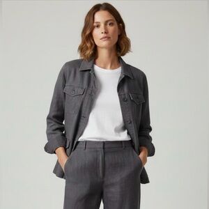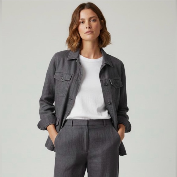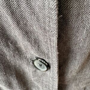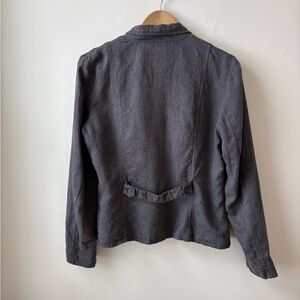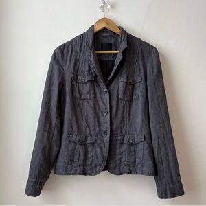 Upgrade your wardrobe with this fab linen dark gray blazer from the Danish company InWear. Button up with company logo written on buttons. 2 patch pockets with flap and button closure at chest and hip. Back detail. Lined with poly. 100% linen. In great preloved condition.